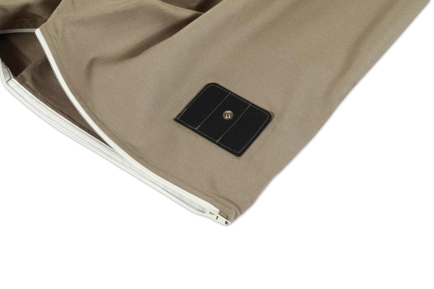 Un bouton-pression situé sur le bord extérieur du sac de couchage permet de le connecter au câble.